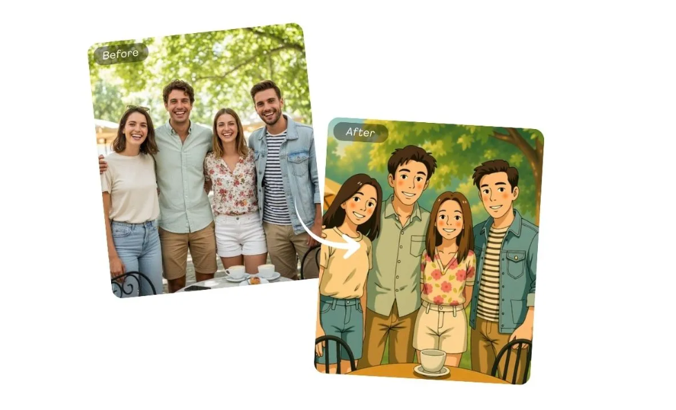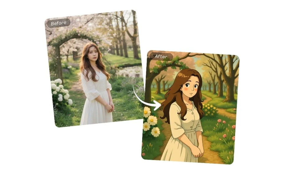 The AI captures light, shadow, and color gradients in a way that mimics hand-drawn animation, giving your photos a cinematic and magical feel.